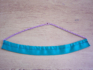 Take a needle and thread and stitch the back of the ribbon to the chain to hold ruffle in place. Be careful not to go through to the front of your ribbon or fabric with your stitch because you will not want the stitch to show.