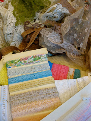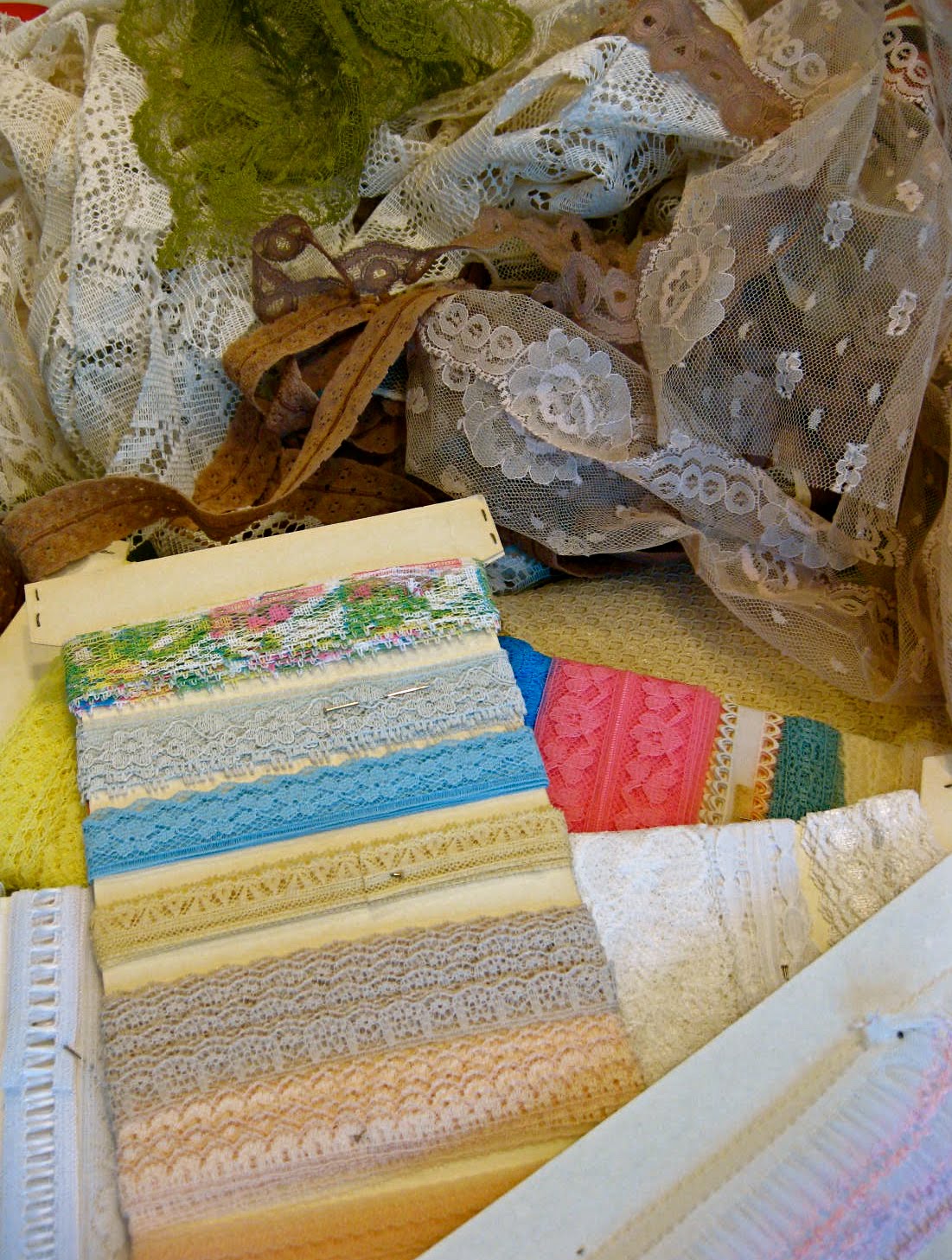 I dumped all my lace out on the table and rummaged through it. I wanted to see all my options and play with the colors, widths and textures.