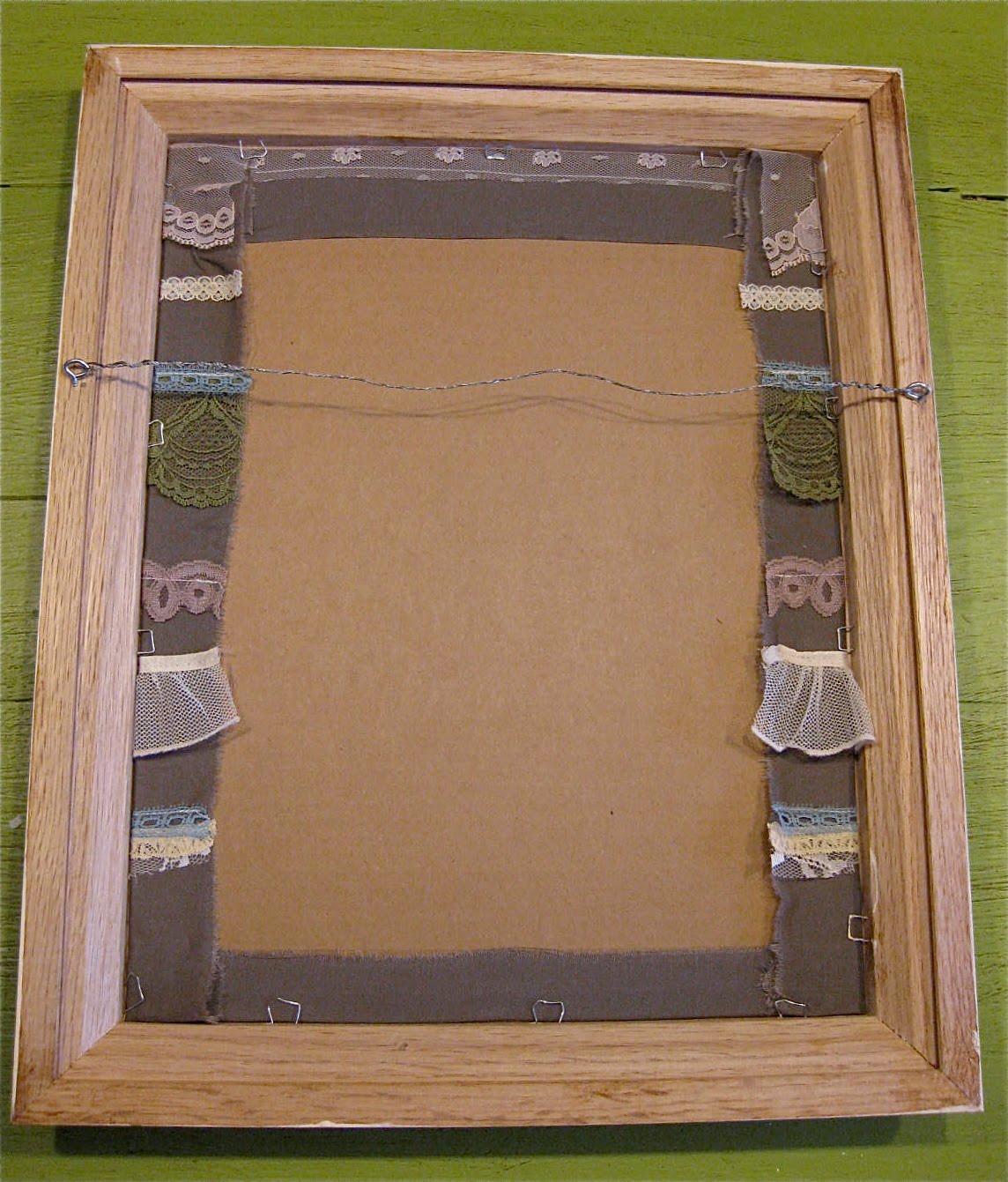 Here is a great user friendly way to store your earrings and have them be accessible from all angles! I really liked some of the ideas that I have seen on other blogs with embroidery hoops, frames with chicken wire etc..., but I wanted something that I didn't have to take off the wall or lift up in order to get my earrings off. The solution? Lace!