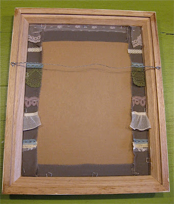 I went to my local thrift store and found this framed water color. I immediately tossed the water color and it's mat in the garbage but kept the cardboard backing. I then painted my frame. Coincidently, the paint color I had was Queen Anne's Lace! It's all so serendipitous!